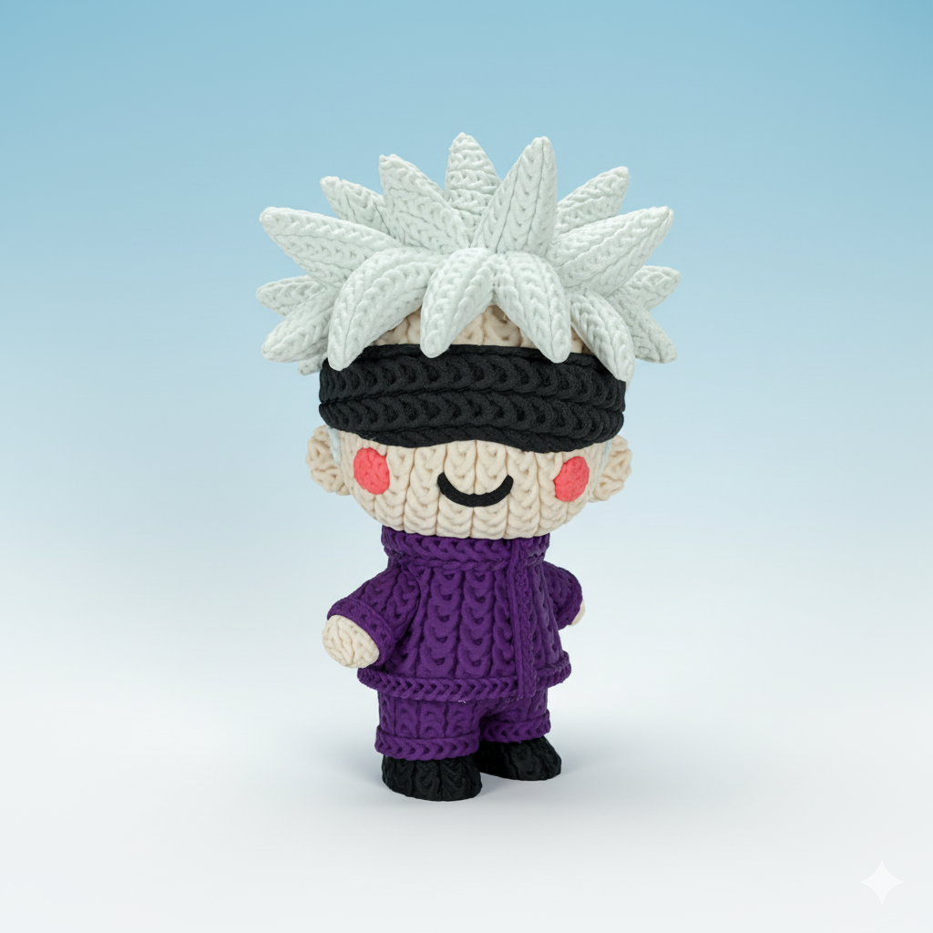 Gojo Satoru Estilo Crochê – Escultura em Impressão 3D Colecionável